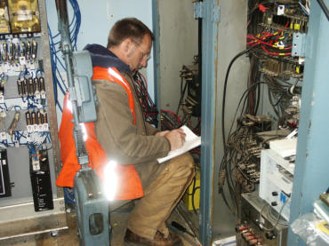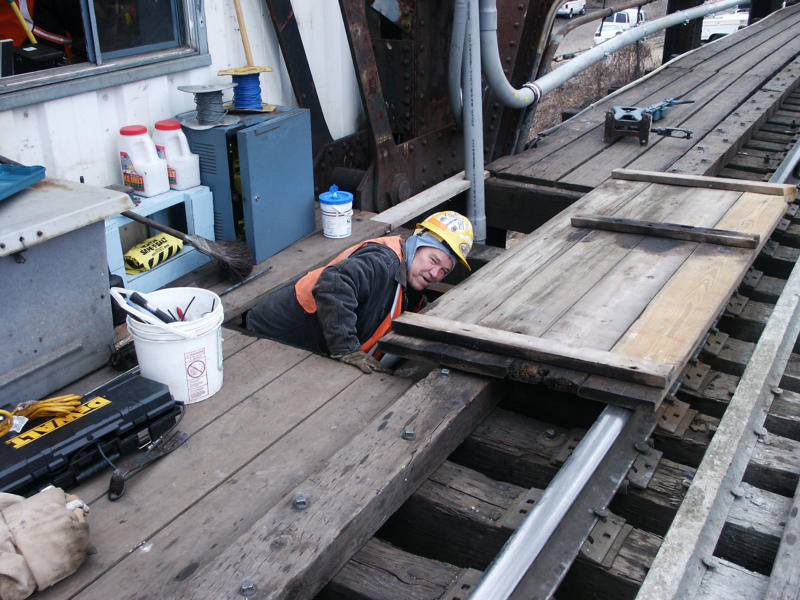 Signal Inspector Bob Bethkey working on the old