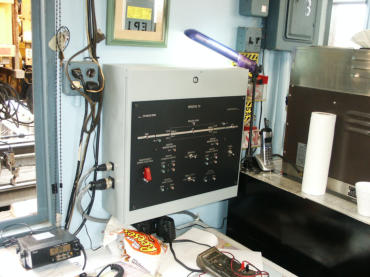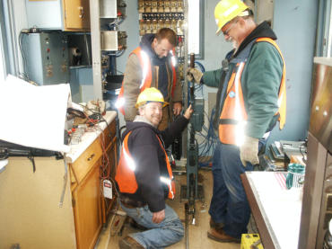Bill, Paul and Ron wiring in new relay rack